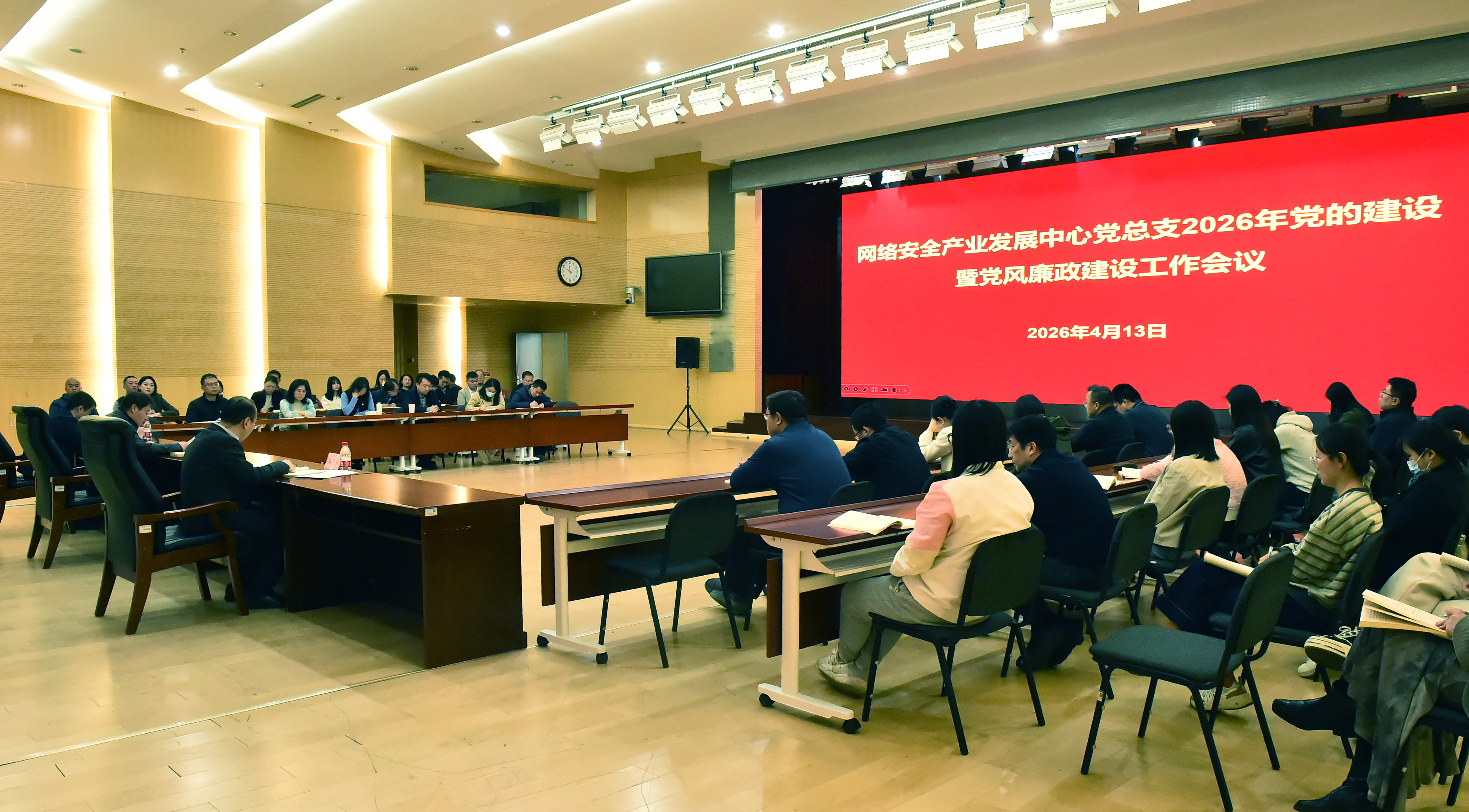 2026年4月13日,工业和信息化部网络安全产业发展中心党总支召开2026年党的建设暨党风廉政建设工作会。深入学习习近平、李希同志在二十届中央纪委五次全会上的讲话和报告,传达学习国务院第四次廉政工作会议、中央和国家机关党的工作暨纪检工作会议和部2026年党的建设暨党风廉政建设工作会议精神,总结中心2025年党建工作,部署2026年重点任务。中心党总支书记、主任付京波出席会议并讲话。中心全体党员参加会议。